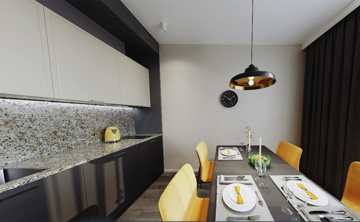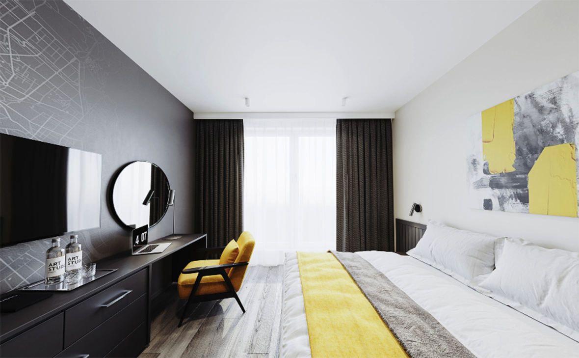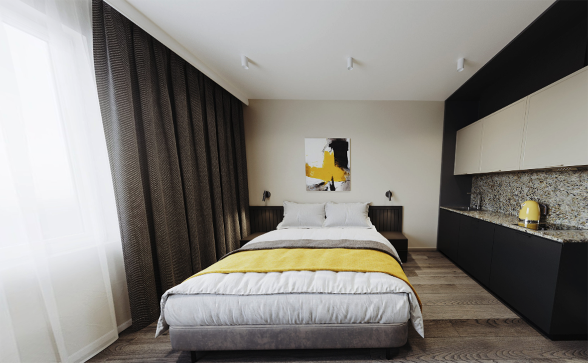 Полная отделка позволит получать доход сразу после сдачи дома и сэкономить на ремонте. Отделка выполняется в нейтральных тонах. За дополнительную плату застройщик готов помочь собственникам в покупке мебели.